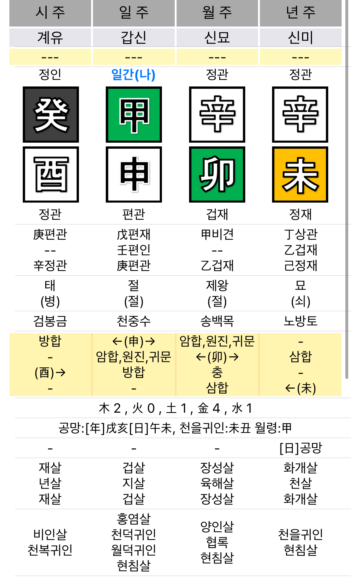- 사주 내 정관(신금, 계수)과 편관(신금)이 동시에 존재